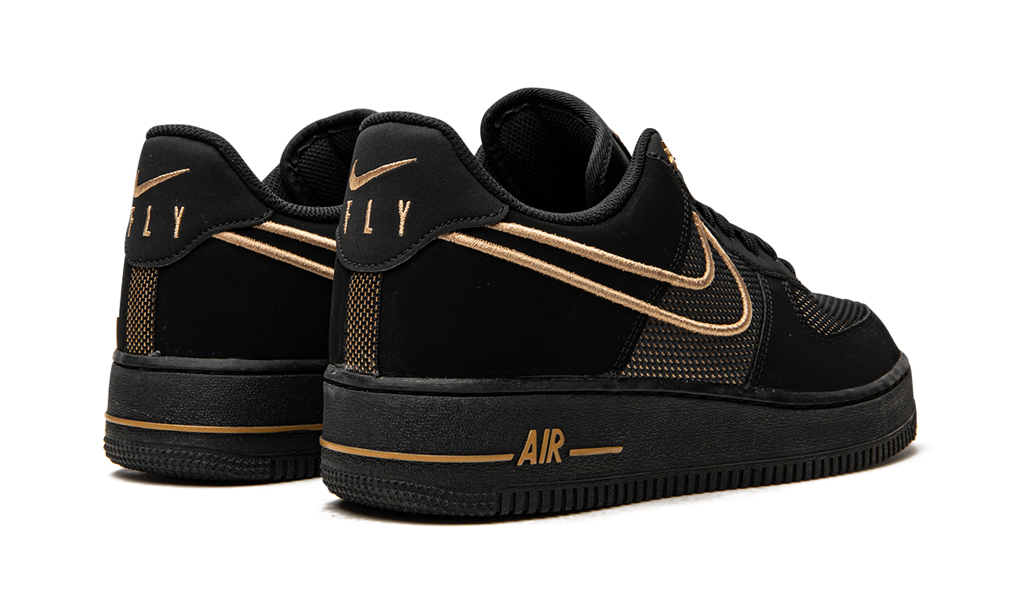 The Women’s Air Force 1 Low “Legendary” is a women’s-exclusive colorway that brings forward a creative look for the classic sneaker. Instead of appearing in its usual leather construction, this Air Force 1 Low is complete with black mesh on the toe and mid-panel and black synthetic nubuck on the toe cap, forefoot, collar, and heel. A Metallic Gold outline Swoosh is embroidered on the sides and gold Swoosh and “Fly” branding are stitched onto the heel tab. The same Swoosh and “Fly” logo combination is also found on the tongue tag, as well. Black laces, a black lace dubrae, and a black rubber sole complete the look of this luxurious vibe for the vintage basketball shoe. Legendary