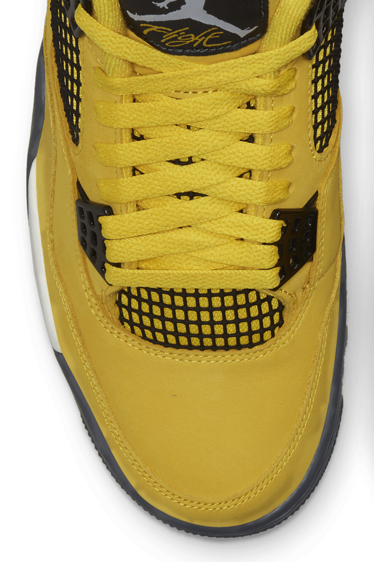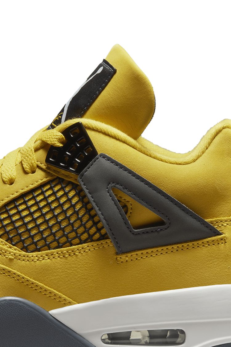 The Air Jordan 4 Retro "Lightning" 2021 is inspired by Michael Jordan"s motorsports team and features a Tour Yellow upper with mesh netting and signature wings. The white PU midsole houses visible Air in the heel for cushioning, while the herringbone rubber outsole provides traction.
