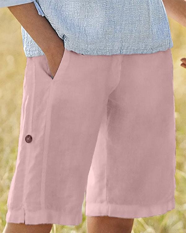 Summer Linen Casual Buttoned Shorts